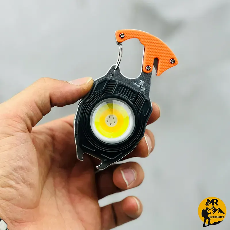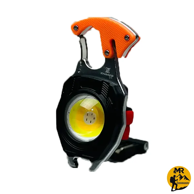 چراغ قوه چندکاره زینگارو مدل W5147 با 6 حالت نوری، باتری لیتیومی، قابلیت حمل دستی و آویزی و ابزارهای کاربردی مانند فندک، آهنربا، سوت و پیچگوشتی، گزینهای مناسب برای کمپینگ و شرایط اضطراری است