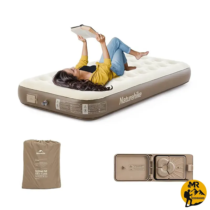 تشک بادی 1 نفره نیچرهایک مدل CNK2550WS013 اورجینال با ظرفیت یک نفره، وزن 4.64 کیلوگرم، تحمل وزن 150 کیلوگرم، ابعاد باز 190×100×38 سانتیمتر و بستهبندی 40.7×13.3×30.5 سانتیمتر، مناسب کمپینگ و سفرهای طبیعتگردی