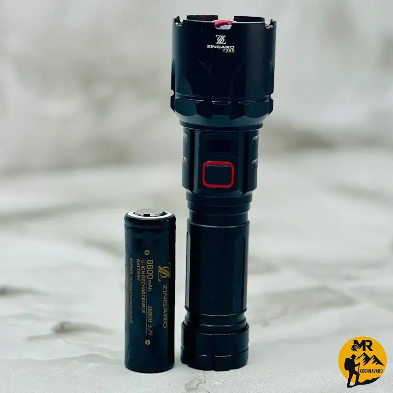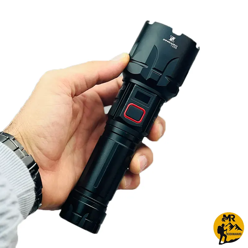 چراغ قوه زینگارو مدل T288 با ظرفیت باتری 8800 میلیآمپر، قدرت روشنایی 2000 لومن، برد نور 400 متر و قابلیت زوم، مناسب شکار، کمپینگ، کوهنوردی و استفادههای روزمره است