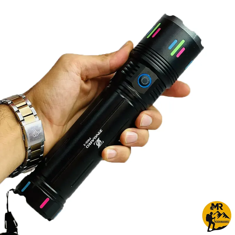 چراغ قوه زینگارو مدل P802-2 با باتری 18000 میلیآمپر، برد نور 1000 متر، روشنایی 3000 لومن و قابلیت زوم، گزینهای قدرتمند برای کمپینگ، جستجو و استفاده روزمره است. مدت شارژدهی 6 تا 8 ساعت و نور سفید یخی، آن را به انتخابی حرفهای تبدیل میکند