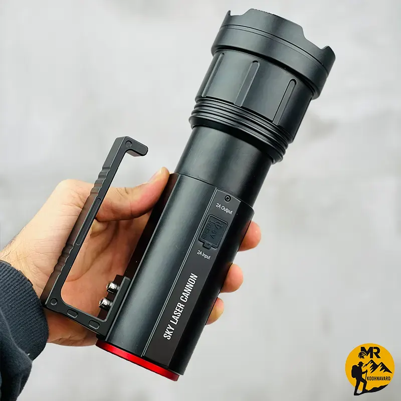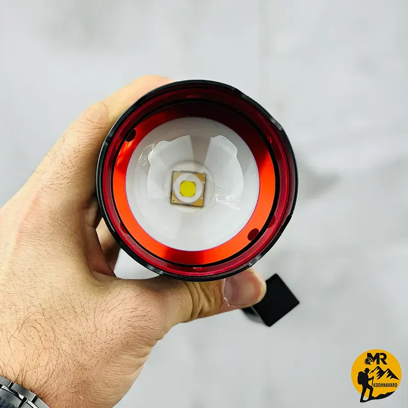چراغ قوه زینگارو مدل YES-603 با باتری 18000 میلیآمپر، قدرت روشنایی 3800 لومن، برد 800 متر، نور سفید و قابلیت زوم، مناسب کمپینگ، نگهبانی و استفاده روزمره با 5 حالت نوردهی است