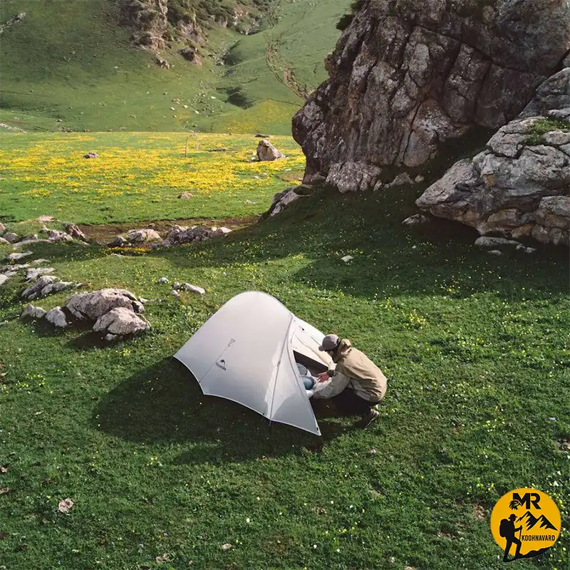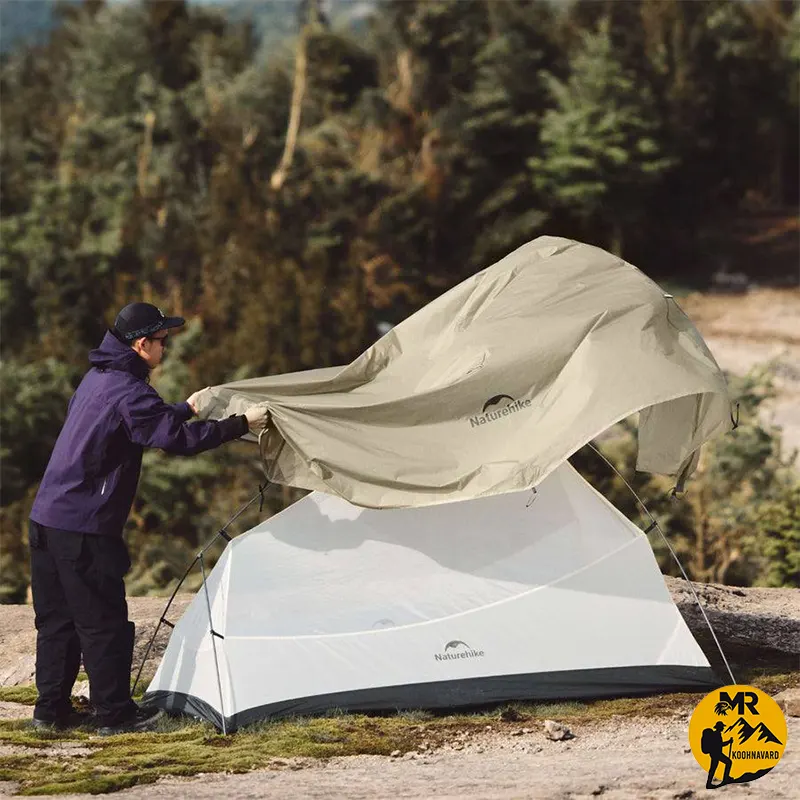 چادر کمپینگ دو نفره نیچرهایک مدل CNK2350WS020 اورجینال با وزن سبک 1.4 کیلوگرم، طراحی دو لایه، ضدآب با تحمل بالای رطوبت و مناسب کوهنوردی، کمپینگ و بکپکینگ در سه فصل سال
