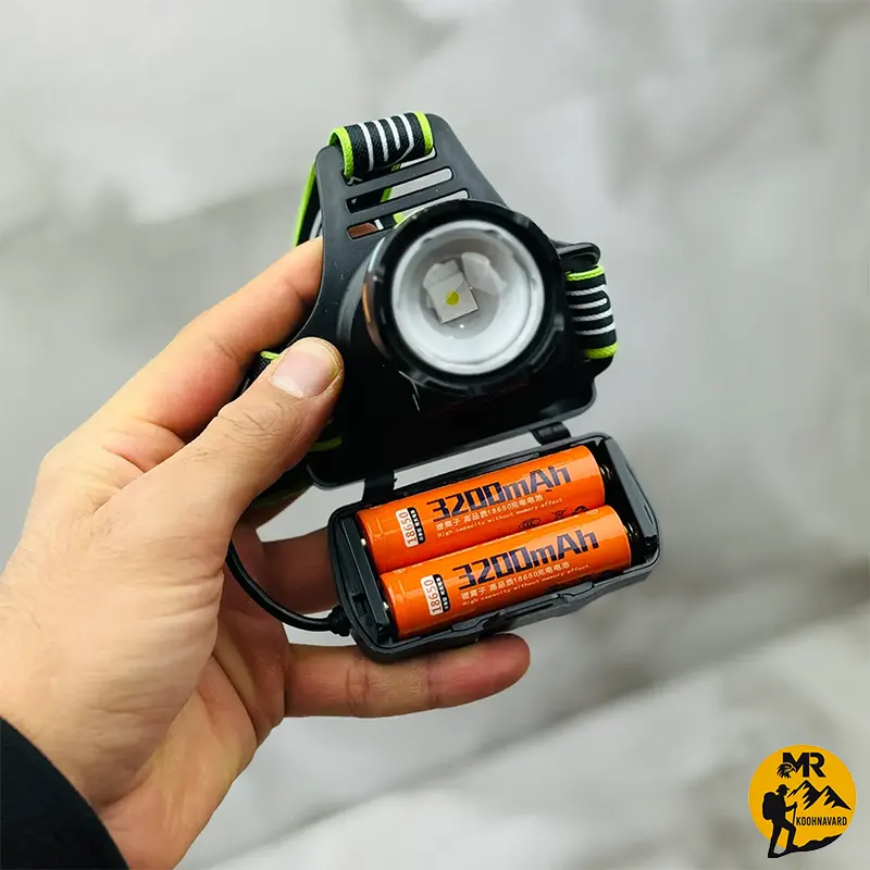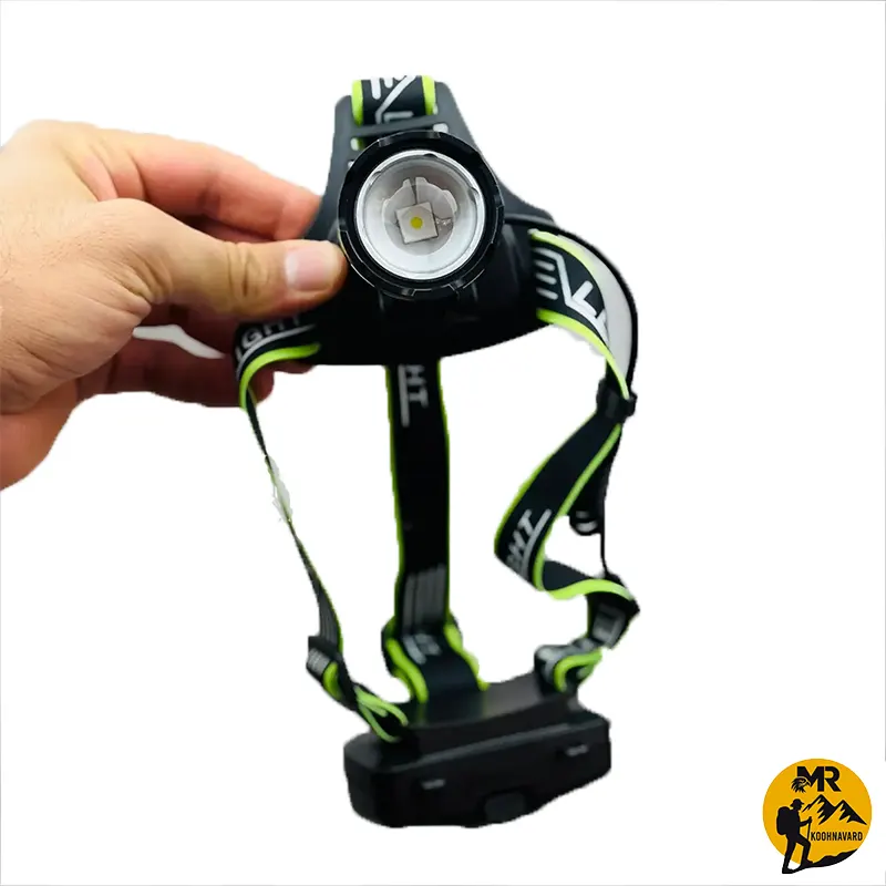 چراغ پیشانی اسمال سان مدل ZY-A35 با روشنایی 1000 لومن، برد نور 300 متر و باتری 3200 میلیآمپری، دارای قابلیت زوم و شارژدهی 2 تا 3 ساعت، مناسب کوهنوردی، کمپینگ و استفاده عمومی