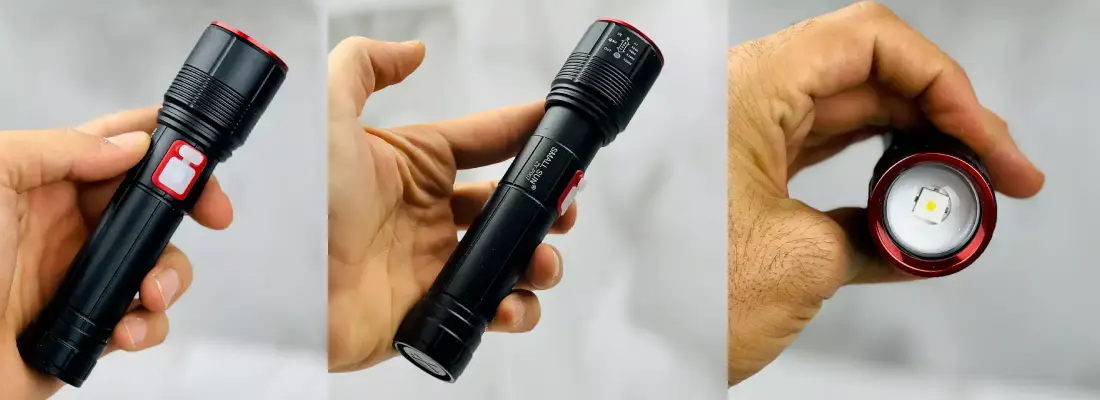- اقلام همراه: چراغ قوه، باتری 18650 با ظرفیت 2200 میلی آمپر ساعت، کابل شارژ USB‑C، بند دستی، معمولاً به همراه جعبه و برخی اوقات جای باتری قلمی