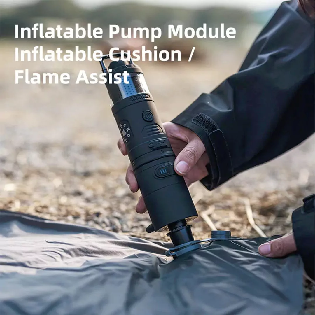 | طراحی ماژولار چندکاره | این چراغ یک ابزار همهکاره با 7 عملکرد اصلی شامل چراغ اصلی، نورافکن، نور محیطی، اسپیکر بلوتوث، فن خنککننده، دافع حشرات و پمپ باد است. طراحی ماژولار آن باعث شده در سفر و کمپینگ نیاز به حمل چند وسیله جداگانه نداشته باشید و همه امکانات در یک دستگاه جمع شود |