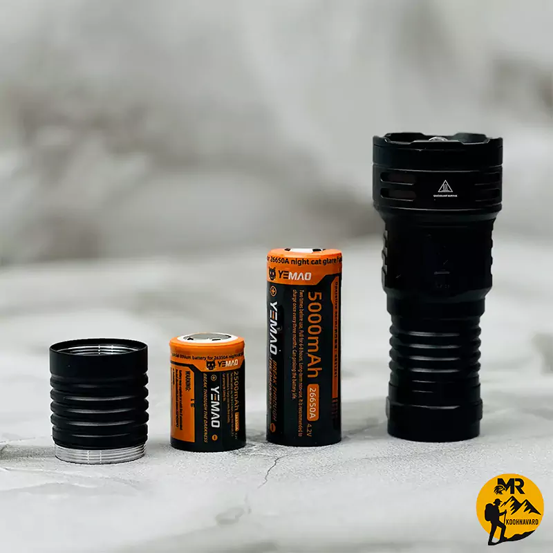 | قابلیت استفاده از باتری 26650A | یکی از ویژگیهای مهم YM-F71X امکان استفاده از باتری بزرگتر 26650A است. با افزودن افزونه افزایش طول، مدت زمان کارکرد چراغ چند برابر میشود و برای سفرهای چندروزه یا مأموریتهای طولانی گزینهای ایدهآل خواهد بود |