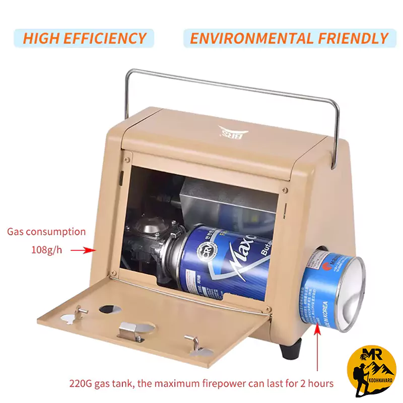 | نوع سوخت (بوتان و پروپان) | این بخاری قابلیت استفاده از کپسولهای گاز استوانهای بوتان و پروپان را دارد که در بازار بهراحتی یافت میشوند. انعطافپذیری در انتخاب نوع سوخت باعث میشود محدود به شرایط خاص نباشید و در هر مکانی بتوانید از دستگاه برای گرمایش یا آشپزی استفاده کنید |