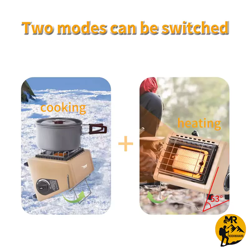 | کاربری دوگانه (بخاری + اجاق پختوپز) | BRS-H23 هم بهعنوان بخاری برای گرمکردن محیط کاربرد دارد و هم بهعنوان اجاق برای پخت غذا یا جوشاندن آب. کافی است پایه مخصوص را باز کنید تا قابلمه یا کتری روی آن قرار گیرد. این ویژگی باعث صرفهجویی در حمل تجهیزات اضافی و افزایش کارایی در سفر میشود |