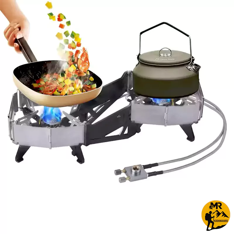 | توان خروجی کل | (3880 وات),مجموع توان دو شعله به 3880 وات میرسد که قدرتی چشمگیر برای یک اجاق کمپینگ محسوب میشود. این خروجی بالا به شما اجازه میدهد چند نوع غذا را همزمان بپزید یا حجم زیادی آب را در مدت کوتاهی به جوش بیاورید و تجربهای حرفهای در سفر داشته باشید |