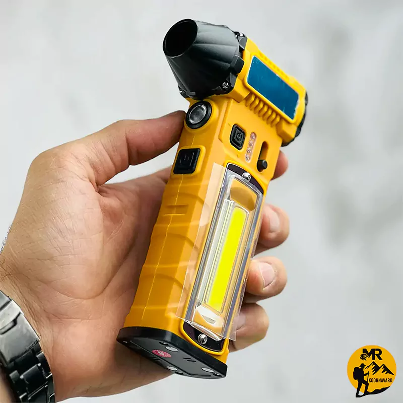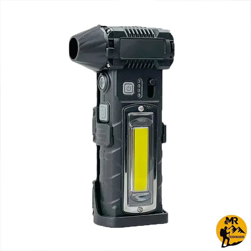 | چراغ قوه | چراغقوه سه حالته این دستگاه امکان استفاده بهعنوان نور متمرکز یا پراکنده را فراهم میکند. این قابلیت برای علامتدهی، تعمیرات شبانه یا جستجو در تاریکی کاربردی است و باعث میشود دستگاه از یک فن ساده فراتر رفته و چندمنظوره عمل کند |