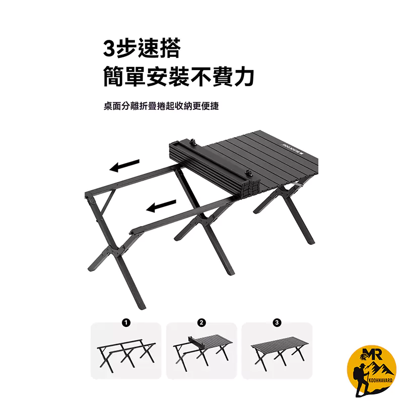 | طراحی | طراحی تاشو و رول تخممرغی این میز باعث شده فضای کمی در حالت جمعشده اشغال کند. این سبک طراحی هوشمندانه، حملونقل آسان و استفاده سریع در شرایط مختلف کمپینگ و سفر را به کاربر میدهد |